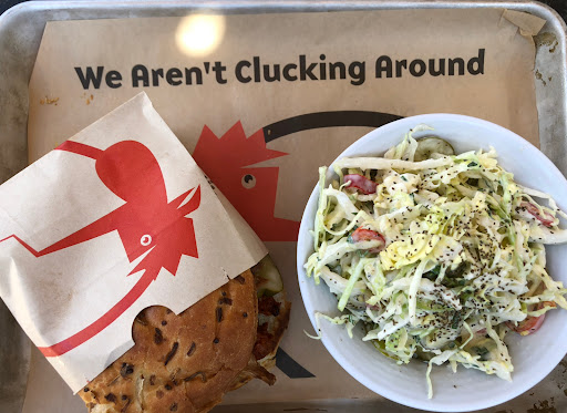 With the Encinitas grand opening next week I thought it would be a good time to review the original location in Little Italy. No longer is it just the off shoot sort of pop up of Juniper & Ivy, it’s a whole separate animal. From that egg hatched a big chicken king. I love the atmosphere, outside communal seating (can be tricky), but that bar outside, perfect if you flip around to people watch. To all the people hating on the fact that they serve chicken, don’t go to a sushi place and order lasagna, maybe they could do it, but they won’t because it will probably be bad. You didn’t wake up blind either. The line can wrap around the corner, doesn’t mean it doesn’t move fast, I’ve seen 20+ people order in 5 minutes. House made sauces are legit, lots of R&D went into those, great service from staff from front to back. Bartenders are legit and you can get a solid line up of beer or craft cocktails. Price can be a bit much if you are trying things, but I’ve tried most everything and come back for a few items and see familiar faces. Priced accordingly. Firebird is more like warm bird, it’s not hot people, plus with that potato roll and ranch it’s tame enough for kids. The chicken they use is Jidori which was made popular by Japanese chefs for it’s flavor, color (no it’s not undercooked, it’s just way pink, it’s to temp people). It’s a juicier bird that Jidori is. Miso biscuits with that maple butter are legit, but I think the miso part was for color only, mild if anything. Senor Croque, that fried egg goes great with the brioche bun, I like it with a crispier fry to hold up to the egg and sauce. Border slaw is so good I make a variation of it at home now. It’s like a Mexican/thai papaya ceviche salad minus the seafood. It’s a great place to go if you are down here, but with the popularity of this corner parking will certainly be difficult. Can’t wait to be a regular on my way home at the Encinitas location.