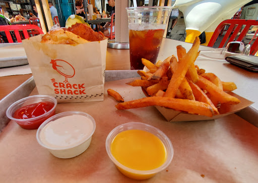 Whoever started this business seems to have taken time to plan it carefully and taken everything into account. The place was full and had a line of people but service is fast and efficient. The food is excellent and there are plenty of choices for all kinds of tastes. I didnt love everything I tried but that doesnt mean it wasnt prepared well; its just meant for different tastes. The fried chicken is what should be expected - super crunchy but not oily on the outside and very moist yet not under-cooked on the inside. As I was eating it I realized it was missing one very important thing and I quickly corrected that - a nice, cold IPA from the bar (and they have many choices there as well). The fries! Oh, those fries! They market them as Schmaltz Fries, so possibly fried in chicken fat, and these are among the best Ive ever had, no exaggeration. One dish based on the fries is the Mexican Poutine, which my kids loved. The white meat in the sandwich was also perfectly cooked which made it juicy and flavorful. Last but not least, this establishment has a trendy yet utilitarian design and a cool vibe that just invites you to go in and try it. The rooster and the tilted semi-roof are the unmistakable trade mark of the Crack Shack. Great find and firmly on my permanent list!