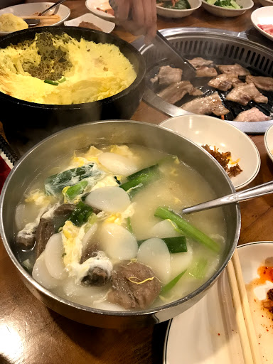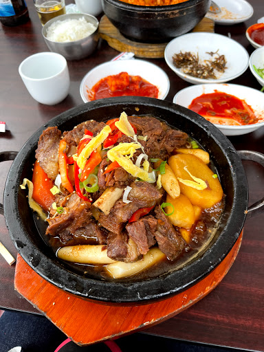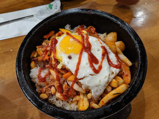 Great Korean restaurant for your wallet! Weve come here so often that the entire staff and owner knows us and even adopted us into their "family". LOL! They get alot of tour buses so theyre the most busiest on weekends with crowds hoovering inside and outside smoking and yabbering like all tourists do. We come here for their kalbi, kalbi gim, bulgogi and my love, the bimbibap! The portions are always generous and the owner and wife often stops by to make sure youre good, happy etc. From time to time, hell even join in on the fun and drink with you (on the house too!). They have the option where you can do the cooking yourself at your table or they can cook it for you. For us specifically, because we have a young daughter whos at the super curious stage, we always opt for them to do the cooking. The only complaint I have with this place is that their kimchi and spicy sauce is not spicy enough although some might disagree with me....Personal preference.. =p