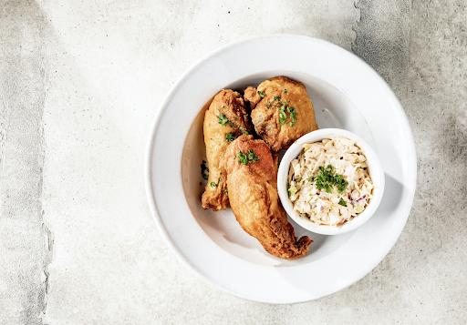 The concept here is great. Decor is great. The servers were great. However, the food is just good, not great. Although all the food we ordered were good, there isnt much I would go back for, especially in the neighborhood that its in. The fried chicken was very crunchy and portion was big. It lacked flavor though and the breading was sweet. The gumbo was served cold on the outside and watery, but had flavor. The best dish was the Mac and cheese. We also had the calamari, which was decent. The sweet potato fries were sweet but rolled in sugar which made it too sweet.