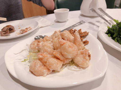 In my opinion this place is way overrated and pricey, yet there were lines down the street to get in on a Tuesday evening - I dont get it. We ordered 3 appetizers: egg rolls (ok but nothing special), salmon and avocado rolls (quite good), and Chinese chicken salad (very bland - all lettuce and crispies, almost no chicken - hardly any dressing). Main dishes included Peking duck (mostly skin and bones - although most of the skin was done to crispy perfection - and the dumpling-pancake thingies to wrap the duck in were undercooked with a raw flour taste edge), Chicken with cashews (the driest chinese food I have ever had - no sauce), Moo shu pork (OK - but just like the stuff at my local Chinese place for less than half the price), and Honey walnut prawns (nice big velveted prawns, and walnuts, but almost no sauce). Service was fine. Ambiance was loud and intrusive - hard to hear my dinner companions above the noisy din, although we might have just been unlucky to be sat next to someone at the next table with a booming voice spouting off about his shooting skills. Overall a major disappointment in my opinion.