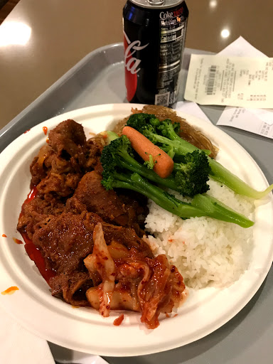 잡채가 기본 사이드디쉬로 나오는것같았고 김치랑 브로콜리를 추가로 먹을건지 물어봐줍니다. Spicy chicken이랑 밥을 먹었는데 매콤한 숯불양념 치킨같았고 김치도 한국스타일 김치여서 만족스러웠습니다. 외국인분들껜 좀 매울수도 있을 것 같습니다. 가격대비 매우 만족스러웠습니다^^ Authentic Korean foods with real Korean style Kimchi