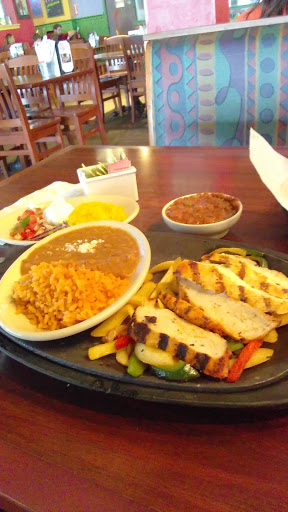 I recomend the steak plate the one thats on a skillet with bell peppers it is good. Not only that but the chips and salsa are too die for. I dont remember the waiters name but the one who was waiting on us kept rushing us. There was a Guy waiter kinda chubby he was kool that dude hooked it up I liked the service he was giving me and my husband on our belated honeymoon dining