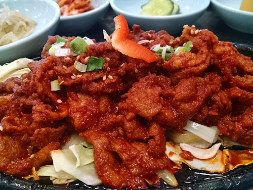 Polite service with a solid Korean menu to choose from, I had their spicey calamari which had a nice texture and the multiple side dishes including kimchi and fish loaf were a welcome balance to the palate from the spicey!! : )