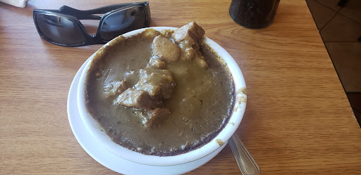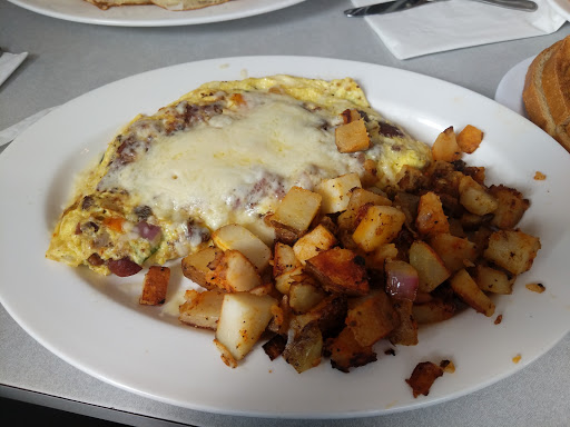 This is the kind of place I seek when Im away from home, for some "local color." Nothing fancy but, instead, really down-to-earth and unpretentious. My friend and I went one morning for breakfast and enjoyed it so much we decided to go back again the following morning. The chicken fried steak was one of the best Ive had. Seemed to have been made from scratch--pan-fried, served with country potatoes. Very much unlike the normal frozen and deep-fried product you normally get. My omelet the second day was very tasty, but overcooked. The side of pancakes was quite yummy. Service was a little on the rusty side, but okay.