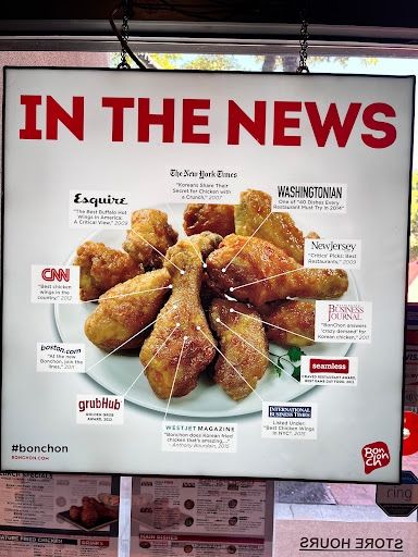 Bon Chon Chicken was the worst thing for my stomach all month, but they have very delicious hot spicy chicken wings and legs at a reasonable price.