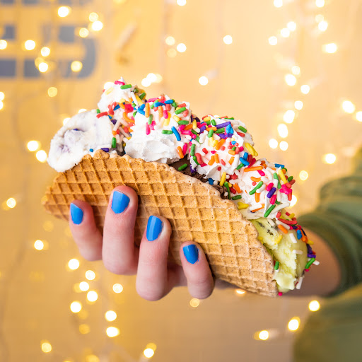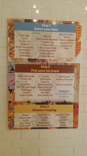 This was a fun place to go. The cookies used to make my sandwich were warm which was nice but also meant they fell apart while trying to eat the ice cream sandwich. Also most of the toppings added to my ice cream also fell off while eating. Tables were also super messy which makes me believe toppings falling off is a common problem.