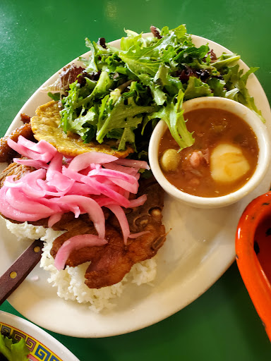The best garlic lemon salad dressing and delicious green salad, and all the favorite authentic Puerto Rican comforts. If youre lucky, theyre not out of the Pineapple bread pudding, though almost equally amazing is the coconut flan. Just get both and share, if possible! Ponche to wash everything down.