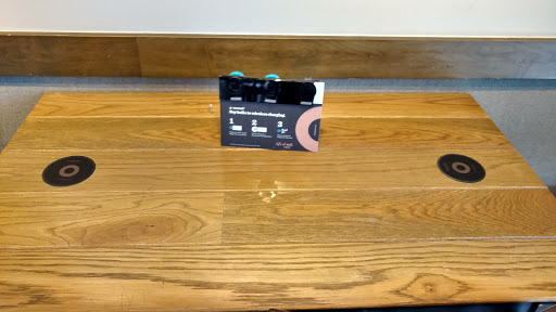 Friendly people. A few tables to sit at. Half a dozen workplaces. Small but not crowded.