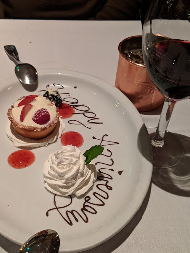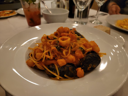 The food and service was excellent and this is easily the best Italian food in town. Parking looked like it was going to be a nightmare but they offered complimentary valet which was unexpected since I had previously only been there for lunch. Now, I dont care for seafood (dont hurt me), but this wasnt an issue at all here. As a trattoria they offer many simple pasta dishes that are very good. The meat sauce is excellent. For dessert we were deciding between the cannoli and mousse and asked for the servers recommendation. He said we must try the chocolate flaun, which we did, and it was to die for. Prices surprisingly werent that bad. Expect to spend only slightly more than somewhere like Macaroni Grill but the food will be on another level.