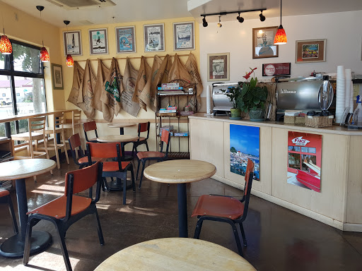 Let me start out with: Try the cherry bomb! Fins is a convenient walk from many hotels, and for this Im thankful. I would swear that there were envious looks at my hotels free breakfast while Im drinking my Fins and others are dealing with the grey water the hotel calls coffee. The place has room to sit and relax, a parking lot, and street parking if you need it. The staff are friendly, and while not the quickest Ive dealt with, good at getting through the customers in line. There is a good selection of pastries in the display case, but I didnt try them or any of their other savory options. I had three cappuccinos and a traditional black coffee from there. The coffee was good, not quite as strong as I like it but much better than any of the chain shops (and lets not even try to compare the hotel stuff to it). The capps differed depending on who was working the machine. I had a great and two good cups from them. What really got me was the cherry bomb. One of the folks from a meeting being hosed at UCSC spoke to a bunch of us about it. A mocha with cayenne pepper and some cherry flavoring. Ive grown away from mochas, the sweet just doesnt do it for me anymore - but this drink is an exception. The warmth of the cayenne comes to the front and heightens the total flavor of the coffee. It was so good I almost went out of my way to go back for another to drink on my drive home. I recommend you check out Fins (and the cherry bomb) if you are in the neighborhood. I know Ill be going again.