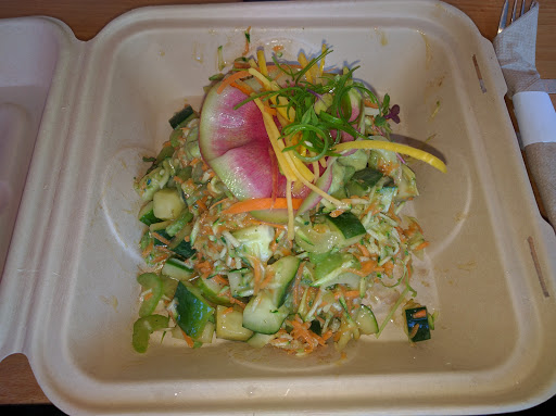 Amazingly delicious Paleo food that was surprisingly very reasonably priced! In fact, I have never been to a cafe/restaurant with such high-quality ingredients and paid so little. Here are the items I tried: * Sliders: 2 beef sliders with sweet potato hash browns as buns! Served with zucchini and avocado. Getting this was a great decision. What an absolute treat! The patties were perfectly made and the sweet potato buns were tantalizing. The zucchini was plain, but hey, not everything has to be flavored to the max; the natural taste of vegetables can be a delight too. This combo was excellent. * Peppermint Bulletproof Coffee: they sweetened it with xylitol. I really enjoyed this coffee. There wasnt too much butter, which I was happy about. My husband puts in too much butter I think, and thats why I wasnt a huge fan of BFC in the past. However, the store version showed me that just a touch of butter can be enough, not to mention delicious. This was more of a sipping type of drink for me, whereas I can gulp down other kinds of coffees. I believe its the richness of the butter that makes one want to slow down, but that also results in going too slowly and ending up with a cold 1/3 of your cup left. :) * Cauliflower Rice: I believe they were attempting fried, cheesy rice. It was a little on the dry side, but still very appetizing. The spices were mild and gave it a slight umami touch. It was overall ok, but Id only do this again if I were having a hankering for starch but had to limit them. * Protein Bowl: I stole a couple of bites from my husbands steak bowl. The beef steak strips were perfectly cooked and marinated in something divine! The sauce reminded me of a teriyaki with less sugar. The steak was served on top of a bed of yellow (saffron?) rice. If you are really hungry, Id go for this one. Very generous portion. I also tried the vibration plate! Its free to use. Make sure to bend your knees otherwise your head will rattle! I actually felt pretty energized the next day, which is unusual for me, as I normally get more tired and worn down on vacations (I dont travel well!). I think the combination of the highly nutritious food, vibration plate, beach and sunshine all helped lift my mood and spirits. I will most certainly come back when Im in Santa Monica again.