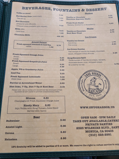 Good food, fast, friendly service. Youll find plenty of diners along historic route 66 that have a shiny, red-and-white, retro look to convince you theyve been around since the 40s. Snug Harbor actually has, and theres nothing shiny about it.