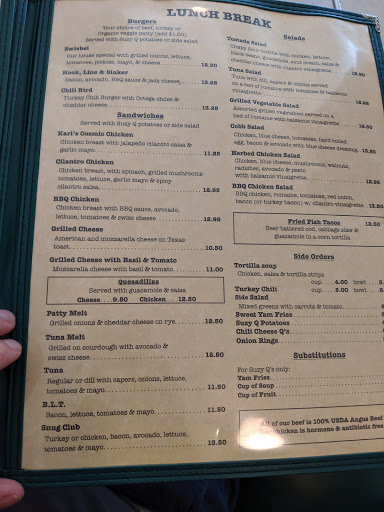 Great selection for a quick bite during lunch. Burgers are great. My favorite is the tuna melt.