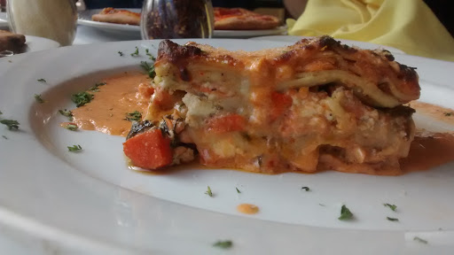 Las porciones son de buen tamaño. En general la carta varia entre los 15 y 30 dólares por plato, probamos la lasaña de productos del mar, pizza de peperonni y ensalada de espinaca y todos de muy buen sabor, se recomienda totalmente. Tiene estacionamientos de bicicletas y coches, hablan en español.