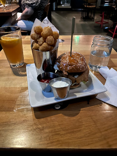 This place was yummy and I will definitely give it a 2nd try. We went on a prime time Friday night and while the place was very busy we had no issues getting a table on the patio - which we loved given how beautiful the night was. We ordered the wings and they were spicy yet very smokey. We both got burgers, and here is where I will caution you. Just, get what you want. I made all the wrong choices and I think i would have enjoyed my meal better if I had just given into the burgers I wanted but seemed too over the top. Next time Im just going for it. The burgers were cooked to perfection, juicy, and had proper seasoning. The fries were also really good - crispy and more shoe string style. I took home half of my fries and burger and had a great lunch the next day. If you dont like left overs be sure to share a fry. 1 is more than enough for two hungry people.