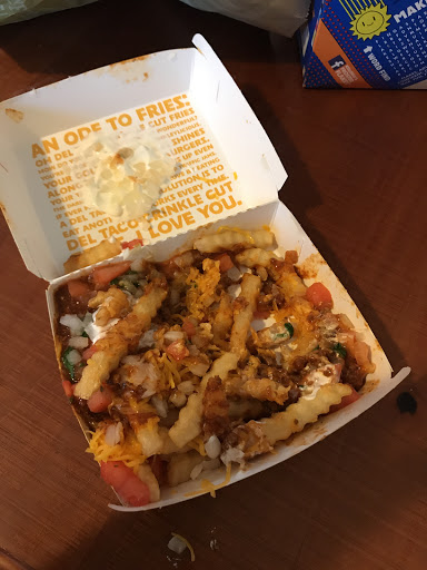 I love Del Taco but this is by far the slowest service Ive ever gotten, I dont blame the staff but the location is under staffed. It took almost 8 minutes to get my oder taken and I was the only one in line. Also the location is super small and you xmas tell it doesnt get cleaned through out the day.