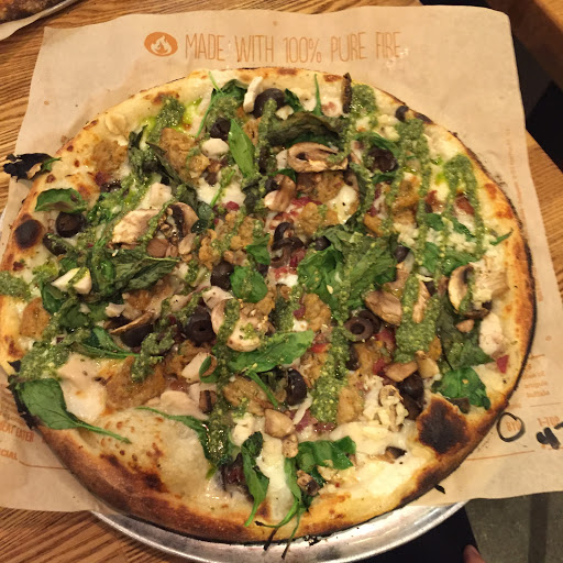 A Chipotle for pizza. Large selection of ingredients. Add as much or as little as youd like. Sometimes there is a bit of a wait to order but they move fairly quickly and efficiently. Can be hard to find a table at times as it tends to get full for dinner.