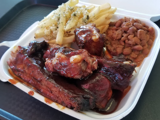TERRIBLE, CANT BELIEVE I SPENT OVER 100.00 HERE , THINKING IT WAS GOING TO BE GOOD. REAL BBQ DOES NOT NEED BBQ SAUCE NOR DROWNING IN IT . IN THIS CASE IT WAS USED TO MASK THE MISTAKE THAT DIDNT EVEN COME CLOSE TO TASTING LIKE BBQ. ITS ONLY OBVIOUS MOST CUSTOMERS HAVE NEVER HAD REAL BBQ BEFORE . SMOKED? ONLY THING SMOKED WAS MY TIME & MONEY . #SERVICENOGOODALSO #FAIL #NOBUENO #WASTEDMYMONEY #THREWFOODAWAY #MYDOGSEATBETTER #DISSAPOINTED