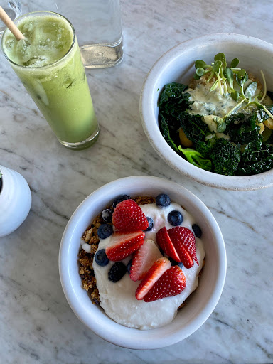 A unique and beautifully decorated restaurant with great healthy vegetarian/vegan/raw food and fresh juices! The food lives up to all the great reviews you have ever seen and the lattes are more incredible than youd think they are since theyre more known for their food than anything else. Perfect place for any meal. The service is always great and I love there is a question of the day that is asked.