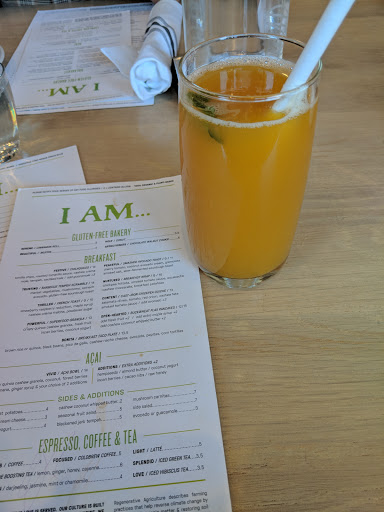 I was introduced to Cafe Gratitude a year ago and fell in love with the whole idea of the restaurant. The food is 100% deliciously plant based, the environment is very positive and relaxing, as well as friendly wait staff. I have been frequenting Cafe Gratitude for a year, because of these factors and the consistent satisfaction! I would recommend the stop! Below picture, Vegan blueberry glazed doughnut.
