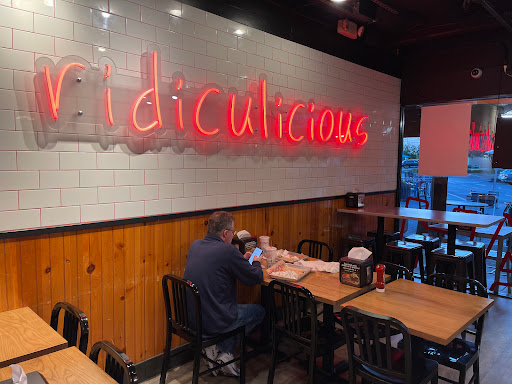This is our go-to place since is closeby. Luckily, its high quality fast food. Burgers: Juicy, made quickly and ready for pickup when you orderonline. The veggie burgers are spicy and old together better than other place Ive eaten. Service: Friendly staff when sitting down or doing take-out. Location: Always parking. Medium sized seating area, but usually somewhere to sit is available. They have a chalkboard for kids.
