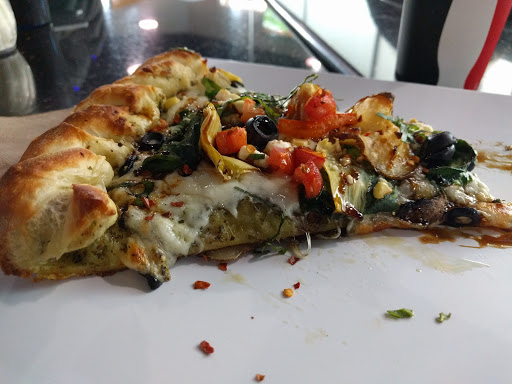 Dont come here for a salad. I know its a pizza place and my friends loved their pizzas, but I was trying to keep it light and had their terrible BBQ salad with tri tip. Their full salad was 2 razor thin slices of tri tip on a huge plate of romaine pieces soaked in a sugary cilantro vinaigrette. I should have take a my $9.45 to the Chipotle next door. Also, the fancy soda machine broke down because nobody their had the manager code to fix it.