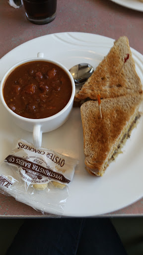 Let us talk money first: Yesterday we ordered the following: 2 bowls of soup: A bowl of soup is $5.75 The Orzo macaroni is soft and gooey. The Butternut squash soup is very plain...2 bowls = $11,50 (( If you want GREAT soup for less money go to the TownHouse in Branford.)) Philly Steak with a cup of fruit salad.... $12.75. It was good but you can get the same thing for less at TownHouse in Branford or Nicks Place in Madison. 2 scoops of ice creme $4.50. (( If I remember correctly Nicks Place a scoop is $1.50.)) So now add $9 for 2 orders. The bill came to $35.35 Now, add the tip of approximately $5.......Lovely ...$40....Pricey for sure. Service is good because we ask for the same waitress each time we go. Im no fool. I found a good one and I am sticking with her. As I paid the bill....The hostess robotically asked me how it was. I said "terrible." It was like I was talking in a foreign language. Just a blank expression. No follow up on my comment. An awkward moment of silence. ....Ah...chalk that up to "youth." I moved to Guilford in 1976. How this place survives is simple. I figured it out...The young crowd that likes to hang out....the first timers....the repeat offenders (like me) that go back hoping things got better....and those who have never been to TownHouse or Nicks Place....or prefer not to drive. Sure ..I will go back....in 10 months or so. I live in town...why not. I will go back to Nicks Place in Madison and the TownHouse in Branford weekly...or daily and in a heart beat. Get my drift?