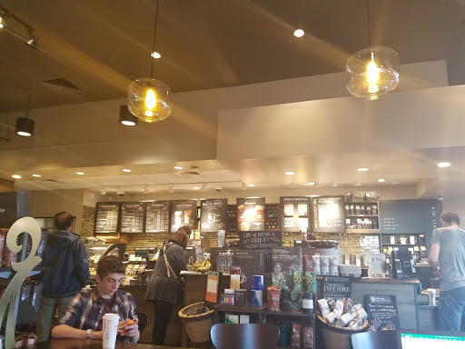 I use this Starbucks to study for a change of environment. Good atmosphere and the young college kids they employ are friendly. Ive been here multiple times and they deserve a good rating. Unfortunately it can get crowded at times but you cant blame a business for that (it just means their doing well).