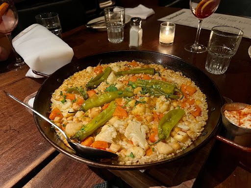 great vibe — both for a bar & for dinner. waitstaff are usually on top of their game: they are incredibly knowledgeable about wine. there are some really stand out dishes here, including the chicken pimientos and the charcuterie boards (my favorites are the valdeon, salchichon, cana de oveja). i would steer clear of the seafood paella — it lacks seasoning and is flavored solely by tomatoes and overcooked seafood. not worth the price.