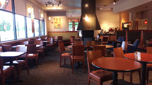I work night shift and frequently stop by this Panera on my way home from work, usually around 8am. They never mess up my order and are extremely fast in producing it! Its never crowded at that time, so parking is never an issue, but parking in the Walmart parking lot is really not that far as another review makes it seem. There is no "roadway" to cross, Panera is already in the Walmart parking lot. Im a big fan of the Cinnamon Crunch Bagel w/ Hazelnut cream cheese... or you can never go wrong w/ a Bacon, Egg, and Cheese. Theres always a fire going and I can almost always get a booth to relax. Lots of people sit w/ their laptops or read newspapers.