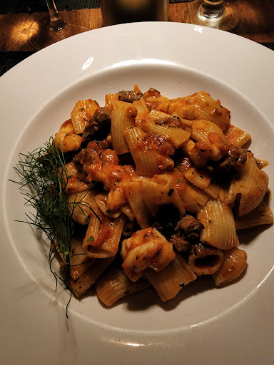 My wife and I recently enjoyed dinner at Il Palio. We had heard good things about it and wanted to give it a try. Although it was a 40 minute ride from our home, it was worth the trip! The location is near an office building complex and although not in a typical retail location, it was convenient to Rt. 8 and easy to find with navigation. Our first impression of the restaurant was that it was a large place with nicely lit trees and landscaping. There is plenty of parking available (we went on a Friday night), a large sculpture out front, and huge, over-sized glass doors welcoming you into a contemporary Italian restaurant. The lighting fixtures were modern, there were large vaulted ceilings with floor to length curtains separating the different parts of the restaurant. We had a reservation and were warmly greeted and seated in a large dining area with vaulted ceilings, warm lighting, a cozy fireplace, and comfortable chair or couch seating. And then the service began! It was extremely attentive and exceptional. Just the right mix of being there on time and knowing when to leave you alone. We ordered a nice Tuscan red wine and listened as our waiter explained the specials for the night. They had some wonderful specials that night and we both ordered the Red Snapper special as our main meal. My wife enjoyed a fresh rainbow beet salad as an appetizer and I was able to get a smaller plate version of that days shrimp & pasta special as an appetizer. The shrimp dish had plenty of shrimp, mushrooms, fettucine and a delicious shrimp bisque sauce that added just the right flavor to the combination. One of the things we dislike when eating out is that sometimes its as if some restaurants try to rush you through the meal by bringing out your entree when you havent even completed your appetizer. The team at Il Palio timed everything perfectly! Il Palio exceeded our expectations and were happy to share it!