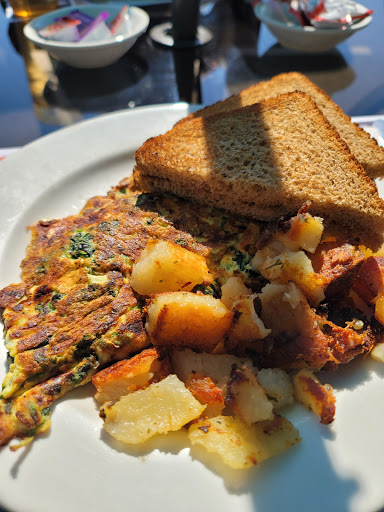 Nice breakfast,good coffee, pleasant setvice. Whats not to like. Very easy access.
