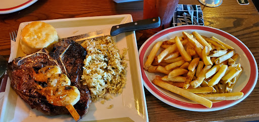 The food was terrible. My partner and I both ordered the ribs with chicken tenders. The tenders were dry, the French fries were fluffy yet somehow still dry, and Im fairly certain that the cut of meat I was given was not a rib. The coleslaw tasted like cheap grocery store slaw. For the amount they charge, we will not be eating here again. Its only saving grace was the popcorn. Our waitress was also very sweet.