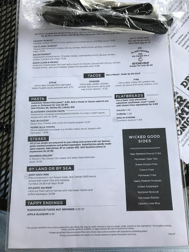 Drove over with my husband to celebrate my birthday. Plenty of parking. No wait at 5:10PM on a Thursday night. We were served by Jessica L, who in my opinion is a World Class Rock Star[tm]. Not too "teeny-bopper" bubbly, but more of a down to earth kind of warmth and sincerity to her, and a quick sense of humor. The food came out pretty quickly, got two Blackened Chicken Pastas and I also got a chopped steakhouse salad, no egg. We each got drinks. My sangria wasnt as sweet as I wouldve liked it, but it was strong and fruity, which are both important components of a proper sangria! The food was as good as it usually is - which means it was delicious. Had the creme brulee for dessert, and this time they put lots of chocolate on the bottom so it was even better than usual. Bathroom was clean, plenty of TP. They might want to look at one of the sink faucets in the Ladies Room, its hard to shut completely off and was dripping when I went in. Jessicas able, prompt, and entertaining assistance tied all the "awesome" of Wood-n-Tap up in a fun package and presented it to us with a big smile.