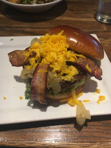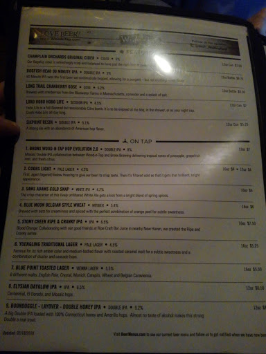 Let me just start by saying that I am general an "anti-mid-range-food-chain" food guy. Just from past experience, it seems like if a place has say, 5 locations, theres usually not going to be much consistency there. That being said, I try to stick to places that have either 1, or more than 20 locations. I know thats not always the case, but again...just based on experience. Ive been hurt too many times. So when a trip to drop off a car for service took us to scenic Wallingford Ct last Friday, there were plenty of these type of restaurant options within about a 2 mile radius. We hard-passed on the first few we saw, but when we saw the sign from Wood N Tap we remembered a couple not completely disappointing past experiences at the Southington location and decided to give it a shot. It was about 5:30 on a Friday night, so we werent really expecting a wait. Was a bit surprising when we were told it would be a 25 minute wait for the 2 of us. We were offered the option of finding space in the bar area, but it only took one look to know that was not going to happen. It looked like a cattle pen that was about 20 cows over capacity. We elected to wait, which was a good call because it ended up only being about 15 minutes. We were seated in a really nice and comfortable booth spot off to the side. The place was pretty packed, but it didnt "feel" packed. Layout was roomy and the decor and lighting were comfortable. Overall for atmosphere, Id give the dining room 4 stars. Waiter arrived promptly and introduced himself and seemed like a generally nice guy that cared about his job, which I appreciated. We ordered drinks (one fancy beer and one fancy Old Fashioned) and put it for an appetizer as well, electing to give the "Tap Room Fries" a shot. Drinks and apps arrived quickly as did our entree orders. Overall for service, 4 stars again. Not perfect, but about as perfect as youll get at a place like this. Food-wise, listen...its mid-range pub style restaurant, dont expect the food to change your life...trust me, it wont. But from our past experiences and this latest one, I will say that the food is super consistent and super delicious. Besides the Tap Room Fries (which are a MUST), we ordered burgers...mainly because we were in a burger mood. I went with the Buffalo Chicken and she went with the Bison. Again, both were delicious. Best burger ever? No. Worth every penny and semi-memorable? Yes! We also ordered an app of the Calamari to go for our son, and I can verify that it was possibly one of the best Calamaris Ive ever had at this type of restaurant. Id call this a "30 minute" joint. If you get there, and the wait is 30 minutes or less, itll be worth your while. If its like 45 minutes, Id consider one of the many other options in the area. I mean, unless you REALLLY want those fries. Then, maybe.