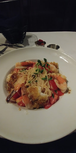 The shrimp was way to large and overcooked. The meal was too bland for my taste. However the hazelnut gelato was Devine. Way to pricey for taste.