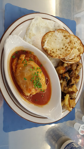 Decent food, mostly comfort food. We arrived to a mostly empty restaurant, so we got a very dedicated waitress. I tried the Loco Moco, (see pictures) which wasnt bad at all. Very colorful, very beefy. A little over salted for my tastes but I dont salt my food much. The meat lovers omlette was very generously proportioned. Id rate the food by itself about 4 stars, mostly due to the portioning and the creative specials. What really stood out for me that brought it to five stars was the very helpful waitress. My wife had a problem with a swollen ring finger, so the waitress offered a cold compress. She offered to help as much as possible, very prompt on the coffee and water. Altogether, if you support local non branch businesses, this one is decent for the price. Loco Moco - 9.99 Meat lovers - 12.99