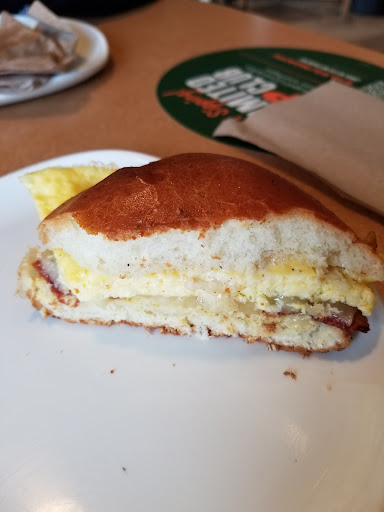 Stopped for breakfast Sunday morning. Had trouble finding clean seat to eat. They werent busy either. Odd. Bagel more like a roll these days. At least the ice tea was good. In the future well stick to breakfast at the local restaurants.
