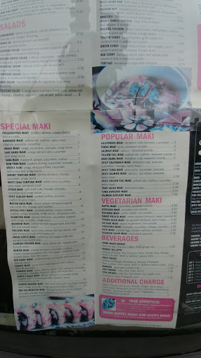Happy hour Half price sushi. Fresh. Good service.