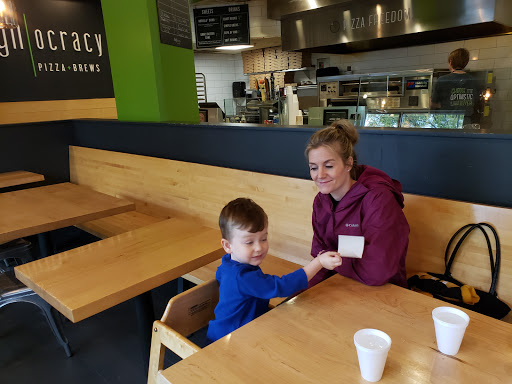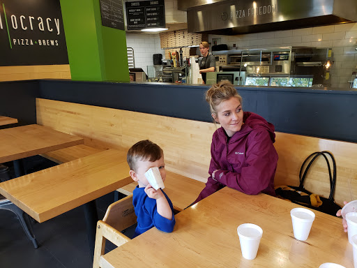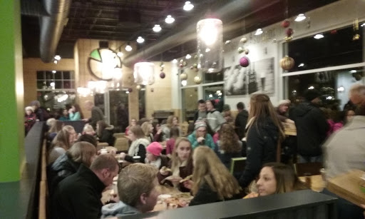 Great easy eatery with delicious pizza. Its pizza after the Chipotle model. You start with a pizza crust and add toppings as you go down the bar. Then they toss it in the oven while you pay, get drinks, and nab a table. They typically call your name after five or ten minutes. Thin crust pizza on a handmade crust. I dont think Ive ever had a bad pie here, and we go quite frequently. They also have beer and wine and organic milk boxes for the kids. They get pretty busy at dinner time, and finding a table can be difficult. Thankfully, the service and the food are both quick and tables seem to usually turn over pretty quickly.