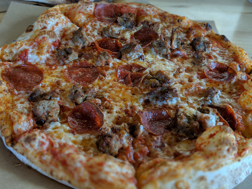 Delicious pizza. Great dough. Topping g options plentiful. Could have used some guidance in choosing a complete pie. Great reheated. Well priced.