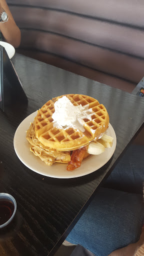 The porkchop was fried and seasoned to perfection! Delicious. The bacon maple glazed donuts were ok, the twist of bacon was a bit much....but still gets a thumb up. The platter was only enough for one, and it costs as much as a platter from Famous Daves, which easily feeds 2-3. I was told that the bread pudding was a bit dry, but the flavor was there. Reason for three stars? A little pricey for location. A little pricey, in general....and I am usually not one who takes a whole lot of issue with cost. Restrooms were not tidy at all and are positioned awkwardly. I will probably need to try this place again, just to be fair.....maybe they need to get some kinks out of the chain. Has great potential & brings a bit of excitement to the area! Definitely could use some tweaking.