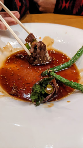 Key takeaways: expensive/low value for dollar; curt/rude staff; closing process invades the dining room nearly an hour before closing time. The devil is in the details here. The food is good, but very expensive for the portion sizes. Id say its pretty typical of this restaurant type, actually, nothing really remarkable. Prices were 20-30% more than seemed reasonable. Entrees include only rice—no soup or salad. It would have been forgivable if the main items were portioned more generously, but that was not the case. Goma-ae appetizer was maybe an eggs volume of spinach, hardly deserving of its $5 price tag. Two small filets of mackerel ("Sio" Yaki saba, $14) came accompanied by two long slices of carrot, two slices of zucchini, half a dozen green beans, and an (admittedly delicious) deep fried item I have not been able to identify. The Beef Nabe Udon ($13) fared slightly better in the value assessment, but not by much, as it was mostly udon and light on the meat and vegetables. Both entrées were tasty, but lacking substance. Also lacking was the service—far from the usual friendly and helpful norm at Japanese establishments. I would go so far as to characterize the waitresss behavior as rude, especially her attitude toward us when the minute of "officially clos[ing]" came and she practically demanded that the check be settled even though we were not yet finished. In fairness, though, it seemed like nobody wanted to be there until closing. The whole (visible) crew consisted of two sushi chefs and two waitresses. The sushi chefs busied themselves with cleaning the countertop display case, then fell back to watching videos together on a smartphone well before closing time. At various points, we saw one waitress or the other: bring a bucket of soapy water and large red rubber gloves out and set it on the sushi bar; fiddle with a smartphone only half concealed behind the kitchen curtain; and peek through the curtain several times in the space of a minute to see if we were finished. Those are just the obvious occurrences, and nearly all occurred before closing time. The display case cleaning was starting as we arrived, roughly 45 minutes before closing. Its also worth noting that the waitstaff working tonight wore sneakers under their uniforms, which were in plain sight as they walked around. That further killed the decor, I think. The outfits just didnt go together.