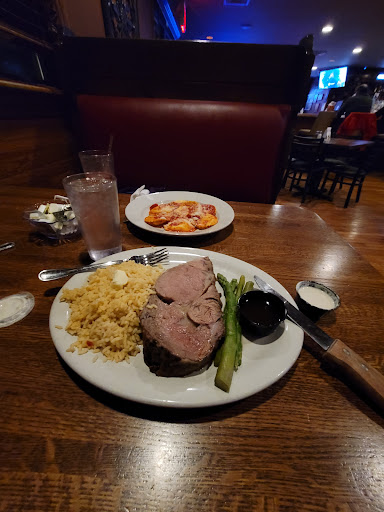 Ate there on Sunday night when they had a table of at least 25 senior citizens. Our server, JoJo served our main entree after serving customers who came in after us. After an hour we got our dinners. My wife had ribs and shrimp with baked potato (which she never got and no apology from the server) The ribs were tough and not very flavorful, but the fried shrimp was good. I had the London Broil. The meat was cooked ok but was very bland. All in all a bad experience and if we ever go back it will be a long time before doing so.