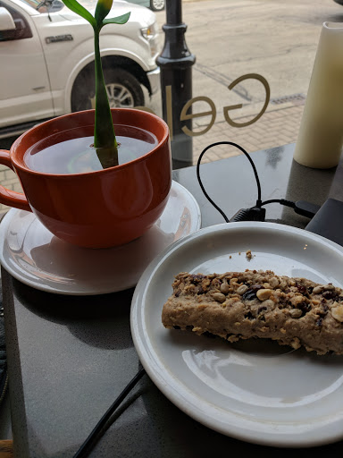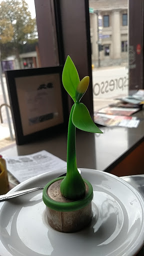 Good coffee & espresso, which is all too rare. A nice mix of flavors & syrups if thats your thing. Decent baked goods and work local artists on the walls. Nice place to kill some time.