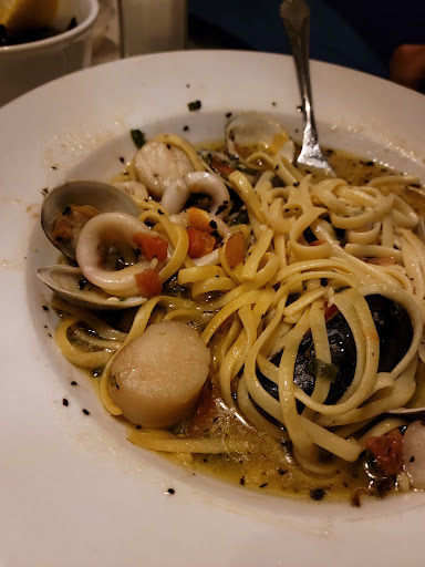 I had an awesome waiter- Frank. Really welcoming and great recommendations for wine and food. Kinda pricey but I did get 1.5lbs of Lobster for $25! So I cant really complain! Salad was awesome and you have to try the house made creamy garlic dressing! Not too thick and flavored perfectly!