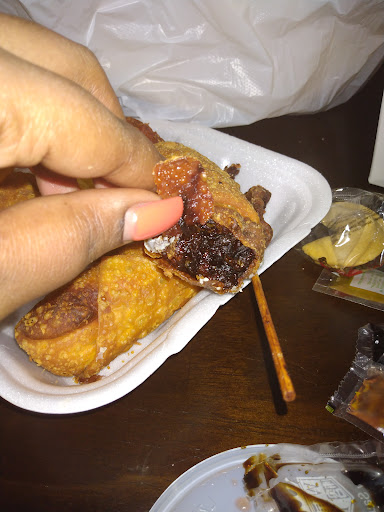 Saddest Chinese restaurant in the area. Smells like rotting broccoli, person at the cash register was banging his fist on the counter and had a napkin wrapped wound. Air filter placed in the middle of rhe dining area, dirty kitchen, unfriendly people. General tso s chicken was fatty and flooded with sauce, egg rolls were bland, only knives and napkins available at counter, 85 degrees inside, dirty storage room was wide open.