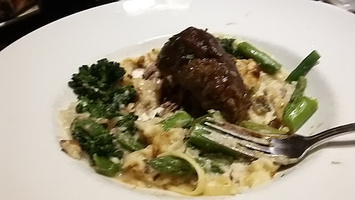 Food prep could be better - read on. I ordered the dark flight of four. The glass of the Broad Axe was 1/3 head on top. Not a full four ounce glass of beer that I would expect. My wife and I ordered the bowl of onion soup. Hot, rich and beefy. Very good. My wife ordered the Bennie Mac and Cheese. Very good, but the piece of toast that came with it was over done and dry, mostly air as far as bread goes. Flavor was good though. I ordered the Short Ribs per the recommendation of our waitress, vs. the bone-in ribeye. I should have gone with the ribeye. The portion was small - three ribs, maybe three to four ounces of total meat. Throughout, I kept tasting/chewing on tiny bone fragments, like you might find in cheap hot dogs or sausage. I know from experience this is ONLY a result of poor preparation. Bony meat cuts should ALWAYS be scraped with a knife, sharp spatula or other appropriate device before cooking to minimize the leftovers from the cutting process. I needed to use a sharp toothpick at home to remove the last piece from one of my molars. We would still return to try different menu items.