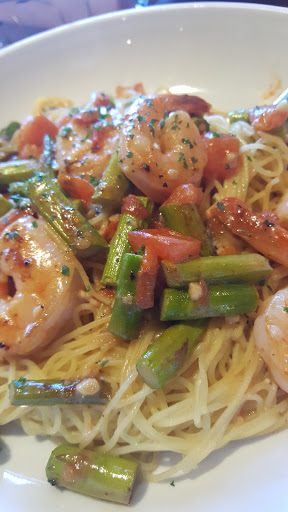 We were greeted right away and there was no wait to be seated. It was a Monday for lunch and not many people. The server was very nice and offered us a complimentary taste of wine, it was delicious. The peach sangria is WONDERFUL! We ordered the design your own pasta and a chicken spaghetti kids meal. I had two smaller children with me and they were able to split the meal for the children so I didnt have to order two and waste the food. The kids meal was a large portion and not too costly at $5.99. The bread sticks were yummy as always. Overall, we enjoyed our pre-4th of July lunch! We would recommend this restaurant.